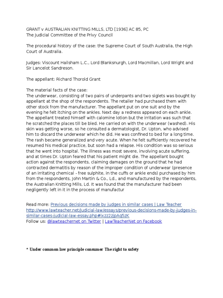 Grant V Australian Knitting Mills Pdf Government Politics from imgv2-1-f.scribdassets.com We did not find results for: Maybe you would like to learn more about one of these? Check spelling or type a new query.